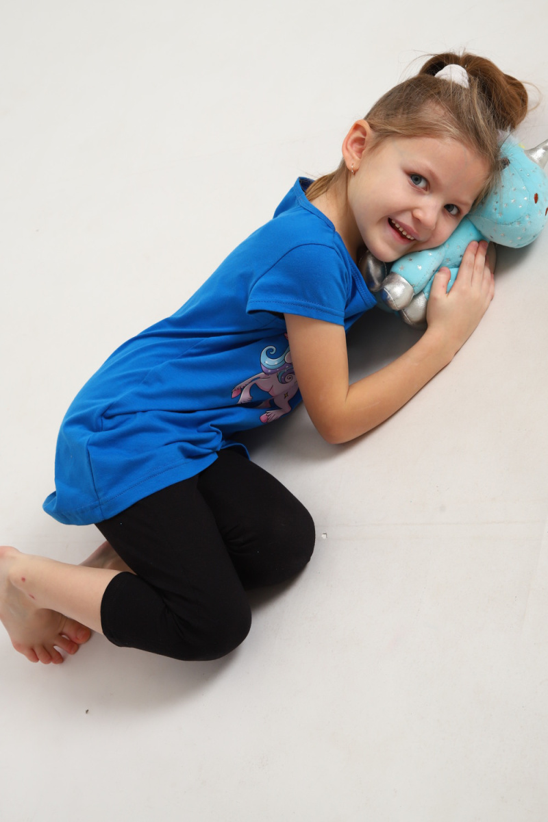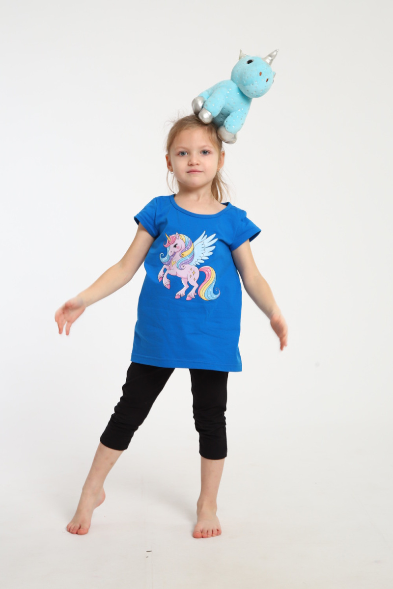 Яркий костюм для маленьких принцесс собран из туники с радужным единорогом и тресс на эластичной резинке шириной 2 см. на талии. Комплект из 100% хлопка, самый удачный вариант для активного ребенка. Туника А - образного силуэта с коротким рукавом и качественной термопечатью по переду. Горловина круглая и достаточно широкая, что позволит ребенку самому без труда надеть и снять тунику через голову. Достаточно разнообразный цветовой ряд, даст возможность выбрать вам костюм по душе. На фото модель представлена в 32-ом размере.